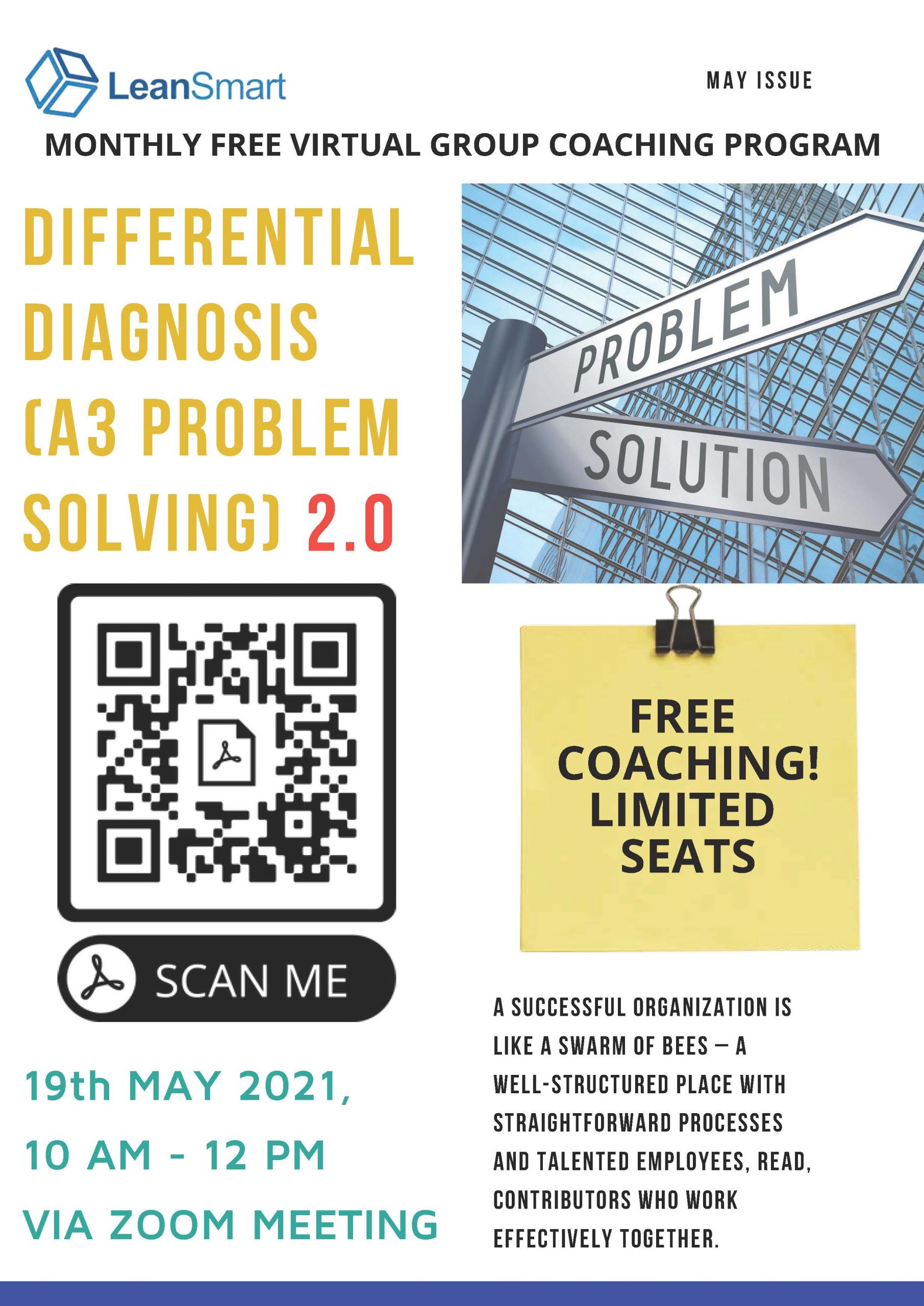 Lean Smart welcomes you to the program and please register through the link given below and we will ensure that you receive the zoom link for the program. For those who have participated previously, we thank you for your time and your commitment to improving the process so please stay tuned to our upcoming Virtual Group Coaching Programs in May.